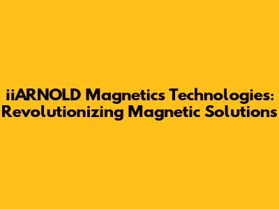 Hey guys! Let's dive deep into the world of iiARNOLD Magnetics Technologies, a company that's been making waves with its cutting-edge approach to magnetic solutions. If you're even remotely involved in industries that rely on advanced magnetic components, you've probably heard the name. But what exactly makes iiARNOLD stand out? What kind of innovative technologies are they bringing to the table, and how are they impacting various sectors? Let’s break it down, shall we?