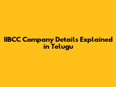IIBCC Company Details Explained In Telugu