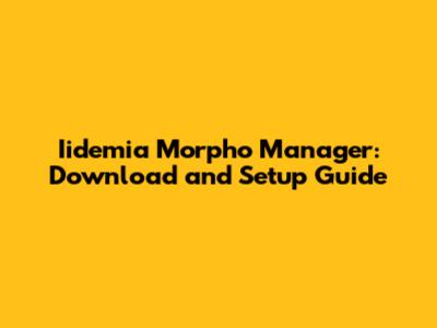 Iidemia Morpho Manager: Download And Setup Guide