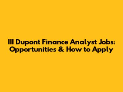 III Dupont Finance Analyst Jobs: Opportunities & How To Apply