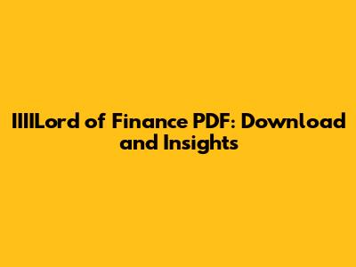 IIIILord Of Finance PDF: Download And Insights