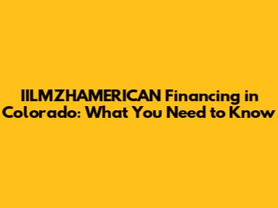 IILMZHAMERICAN Financing In Colorado: What You Need To Know
