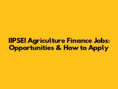 How to Apply for IIPSEI Agriculture Finance Jobs