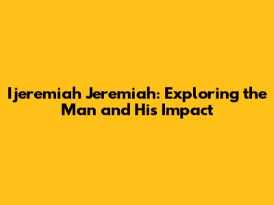 Ijeremiah Jeremiah: Exploring The Man And His Impact