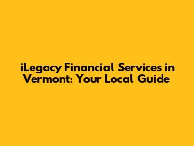 ILegacy Financial Services In Vermont: Your Local Guide