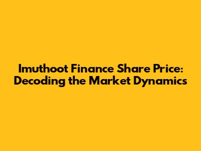 Hey guys! Let's dive deep into the fascinating world of Imuthoot Finance Ltd share price. We're going to explore everything from current trends and historical performance to expert analysis and future predictions. Whether you're a seasoned investor or just starting out, understanding the Imuthoot Finance share price is crucial. So, buckle up, because we're about to embark on a comprehensive journey through the financial landscape. We'll break down the key factors influencing the Imuthoot Finance share price, analyze its performance, and provide insights to help you make informed decisions. It's like having your own personal finance guru, but without the hefty fees! The goal is to equip you with the knowledge and tools you need to navigate the market effectively. We'll cover essential aspects like market capitalization, historical data, and future forecasts, making sure you're well-prepared for whatever the market throws your way. This isn't just about numbers; it's about understanding the story behind the Imuthoot Finance Ltd share price and how it reflects the company's overall health and potential. Get ready to decode the market dynamics and gain a competitive edge in your investment strategies! Let's get started.