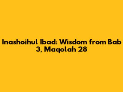 Alright guys, let's dive deep into the treasure trove of wisdom that is Inashoihul Ibad, specifically Bab 3, Maqolah 28. Now, I know what you might be thinking: “Another religious text? Seriously?” But trust me on this one. This isn't just another dusty old book. It’s packed with insights that are surprisingly relevant to our everyday lives. We're going to break it down, explore its meaning, and see how we can apply its lessons to become better versions of ourselves. So, buckle up, and let’s get started!
