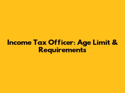 Income Tax Officer: Age Limit & Requirements