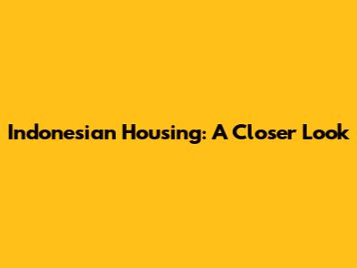 Indonesian Housing: A Closer Look