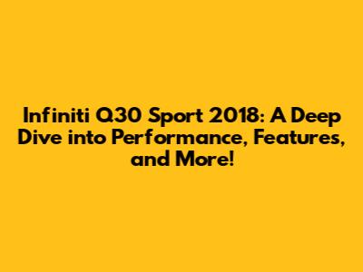 Hey car enthusiasts! Ever wondered about the Infiniti Q30 Sport 2018? Well, you're in the right place! We're diving deep into this stylish compact car, exploring everything from its performance and features to its overall value. If you're considering a sporty hatchback or just curious about what the Q30 Sport has to offer, then buckle up! This comprehensive guide will cover everything you need to know. We'll explore its engine options, interior design, technology features, and how it stacks up against the competition. So, whether you're a seasoned car aficionado or a first-time buyer, this review is designed to give you a clear and insightful look at the Infiniti Q30 Sport 2018. Get ready to discover if this car is the perfect fit for your driving needs and preferences! Let's get started, shall we?