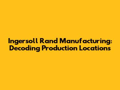 Ingersoll Rand Manufacturing: Where Are Their Products Made?