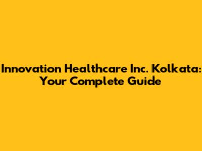 Innovation Healthcare Inc. In Kolkata: A Comprehensive Guide