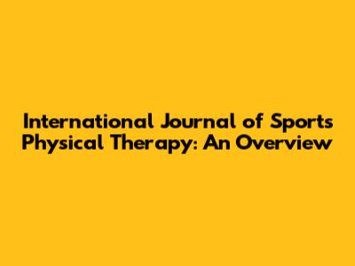 International Journal Of Sports Physical Therapy: An Overview