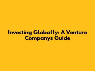 Investing Globally: A Venture Company's Guide