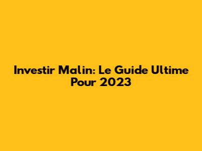 Investir Malin: Le Guide Ultime Pour 2023