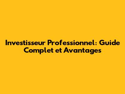 Investisseur Professionnel: Guide Complet Et Avantages
