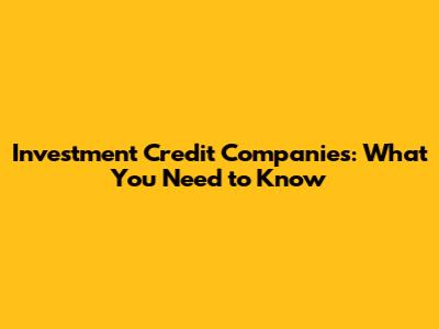Investment Credit Companies: What You Need To Know