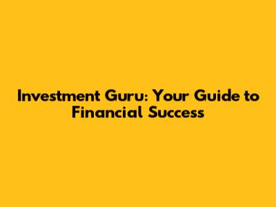 Investment Guru: Your Guide To Financial Success