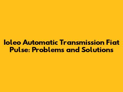 Ioleo Automatic Transmission Fiat Pulse: Problems And Solutions