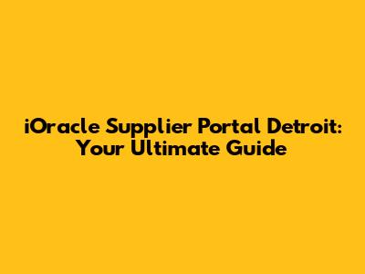 IOracle Supplier Portal Detroit: A Comprehensive Guide