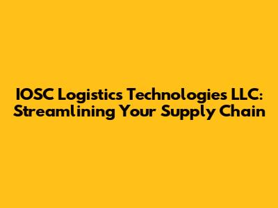 IOSC Logistics Technologies LLC: Streamlining Your Supply Chain