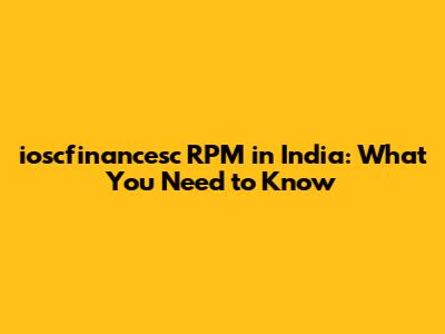 Ioscfinancesc RPM In India: What You Need To Know
