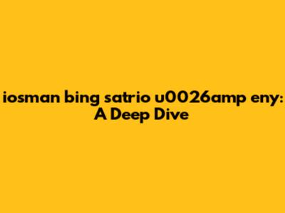 Hey guys! Let's dive deep into the world of iosman bing satrio u0026amp eny. This isn't just a name; it's a story, a journey, and a whole lotta interesting stuff rolled into one. I'm stoked to break it down for you, exploring the details and uncovering what makes it so unique. So, buckle up, because we're about to embark on a fun ride through the ins and outs of this intriguing topic. I will start by giving you a little background on iosman bing satrio u0026amp eny – who they are, where they come from, and what they're all about. This initial overview will set the stage for a deeper exploration, helping you understand the context and significance of everything that follows. We'll then go on to explore various facets of their lives and work, examining key achievements, notable projects, and the impact they've made on their respective fields. I will also try to highlight any challenges they have faced and the strategies they have employed to overcome those challenges. My goal is to make this journey informative, insightful, and enjoyable. Are you ready?