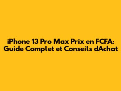 IPhone 13 Pro Max Prix En FCFA: Guide Complet Et Conseils D'Achat