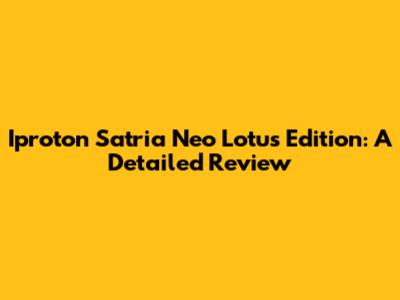 Iproton Satria Neo Lotus Edition: Review & Specs