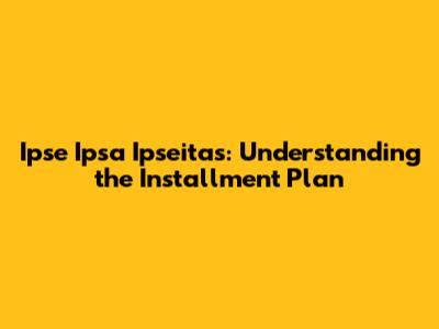 Hey guys! Let's dive into what Ipse Ipsa Ipseitas is all about, especially their installment plan. Understanding the ins and outs of such plans can really help you make smarter financial decisions, so let's get started!