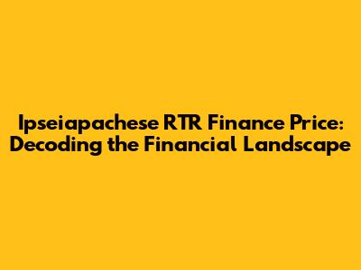 Ipseiapachese RTR Finance Price: A Comprehensive Overview