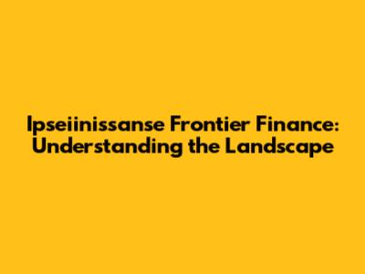 Ipseiinissanse Frontier Finance: A Comprehensive Guide