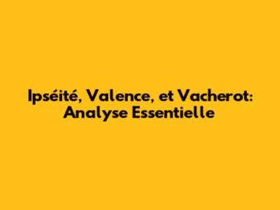 Ipséité, Valence, Et Vacherot: Analyse Essentielle