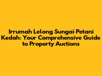 This guide provides a comprehensive overview of irumah lelong sungai petani kedah property auctions. Remember to consult with legal and financial professionals before making any decisions. The real estate market can be unpredictable, but with careful planning and research, you can increase your chances of a successful property auction purchase. Happy hunting, and enjoy your new home!