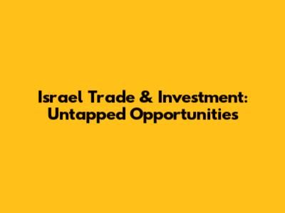 Israel Trade & Investment: Untapped Opportunities