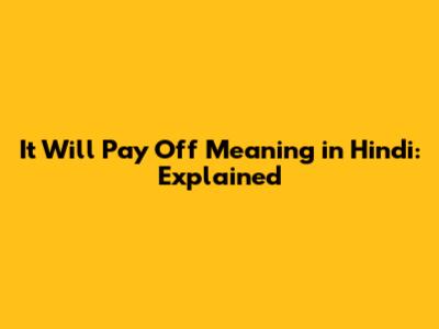 It Will Pay Off Meaning In Hindi: Explained