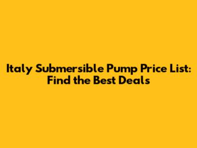 Italy Submersible Pump Price List: Find The Best Deals