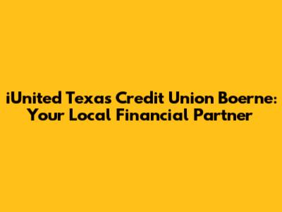 Hey guys! Looking for a reliable credit union in Boerne, Texas? Let’s dive into what iUnited Texas Credit Union offers right here in your neighborhood. This article will explore everything you need to know about the iUnited Texas Credit Union branch in Boerne, from its services and community involvement to its commitment to serving its members. Whether you're already a member or considering joining, this comprehensive guide will provide valuable insights into how iUnited can meet your financial needs in Boerne.