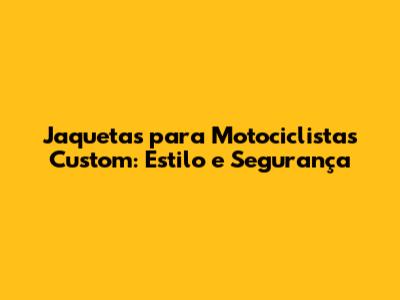 Jaquetas Para Motociclistas Custom: Estilo E Segurança