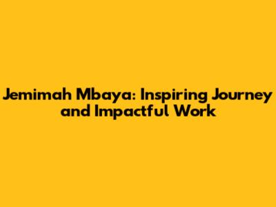 Jemimah Mbaya: Inspiring Journey And Impactful Work