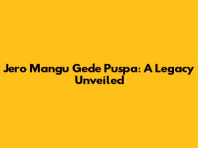 Hey guys! Ever heard of Jero Mangu Gede Puspa? If not, buckle up because we’re about to dive deep into the life and legacy of one truly remarkable figure. Jero Mangu Gede Puspa isn't just a name; it represents a rich tapestry of Balinese culture, spiritual leadership, and profound dedication to community well-being. Let's explore the different facets of his life, his contributions, and the enduring impact he has left behind. This journey will give you a comprehensive understanding of why his name continues to resonate powerfully in Bali and beyond.