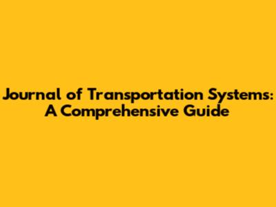 Journal Of Transportation Systems: A Comprehensive Guide