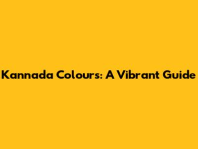 Kannada Colours: A Vibrant Guide