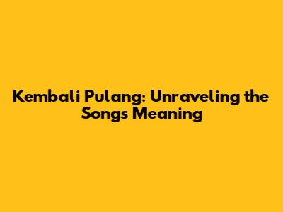 Kembali Pulang: Unraveling The Song's Meaning