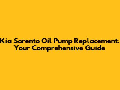 Kia Sorento Oil Pump Replacement: A Complete Guide