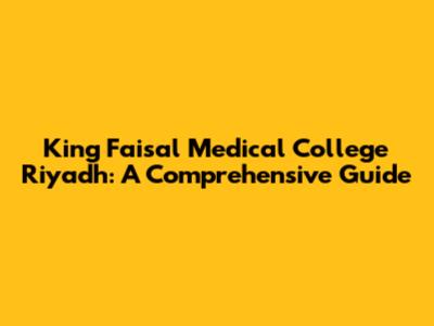 King Faisal Medical College Riyadh: A Comprehensive Guide