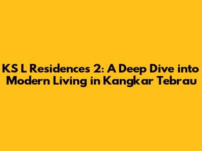Hey guys! Let's talk about KS L Residences 2 in Kangkar Tebrau. This place is becoming a real hotspot, and for good reason! We're going to dive deep and explore everything you need to know about this development – from the nitty-gritty details to the lifestyle it offers. Whether you're a first-time homebuyer, looking to upgrade, or just curious, this guide is for you. We'll cover location, amenities, unit types, and even touch on what it's like to live in the Kangkar Tebrau area. So, buckle up, because we're about to embark on a virtual tour of KS L Residences 2!