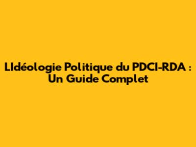 L'Idéologie Politique Du PDCI-RDA: Un Guide Complet