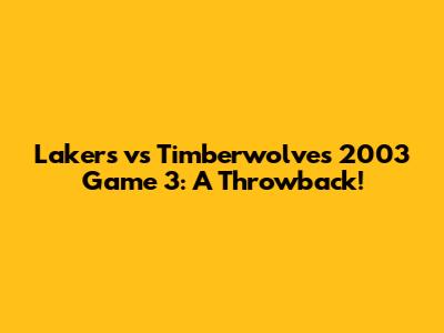 Lakers Vs Timberwolves 2003 Game 3: A Throwback!
