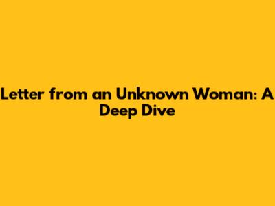 Letter From An Unknown Woman: A Deep Dive